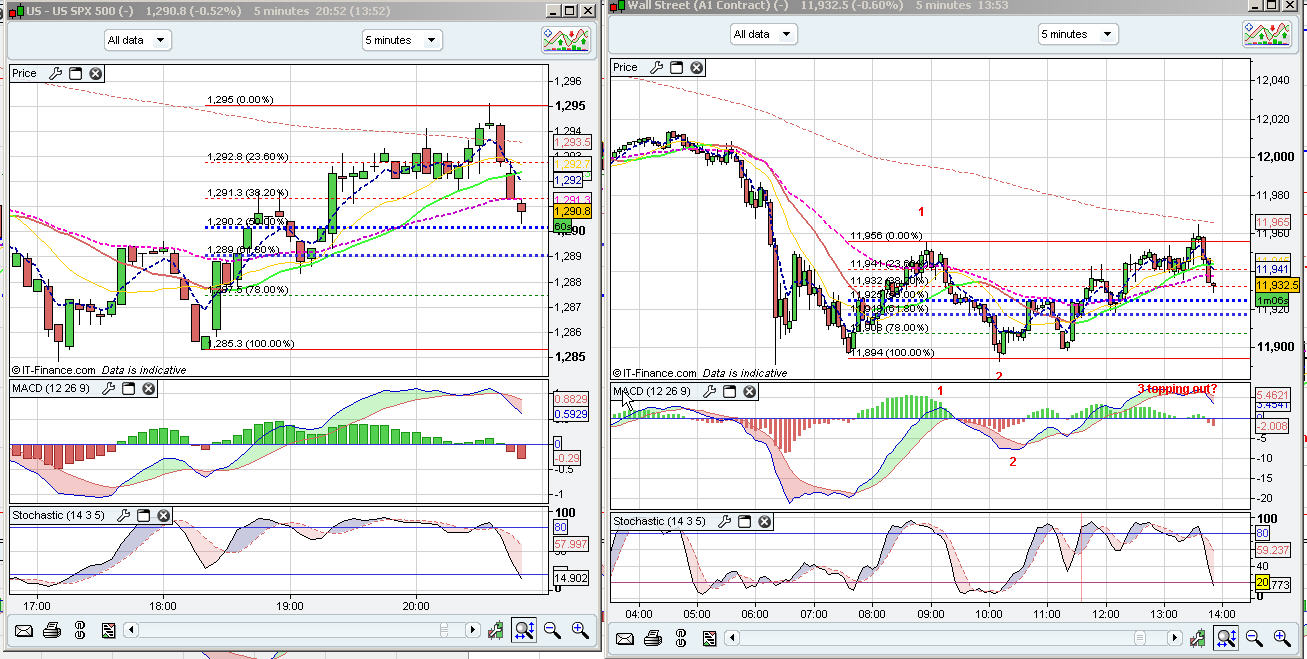 m'kay I am "expecting" a fairly deep retrace on the 5 min on dow now, looing to see how price reactsabout 15 points below for poss long